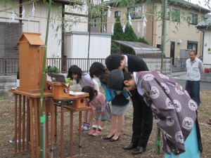 地鎮祭が終了と同時に雨が・・・。数分後には本降りの雨となり