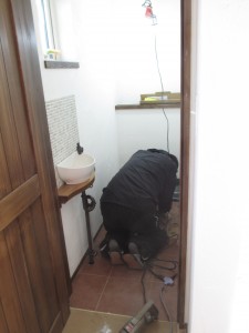 水はね防止にタイルを貼り、細かい配慮をしました。