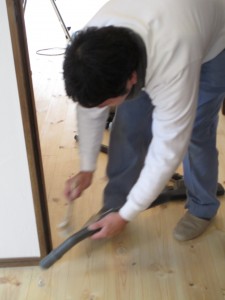 刷毛で埃をかきだして、掃除機で素早く吸っていきます。