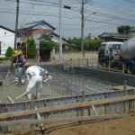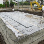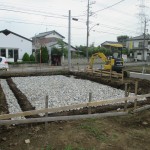 まず、基礎スラブの下には割栗石を入れ、砕石を敷き詰めて固めます。