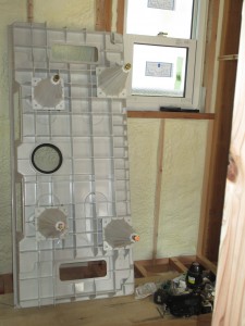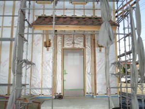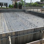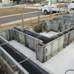 そして、立ち上がりの基礎にコンクリートを打つために型枠をとりつけました。 間口補強筋もしっかり入れています。