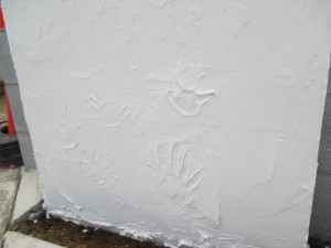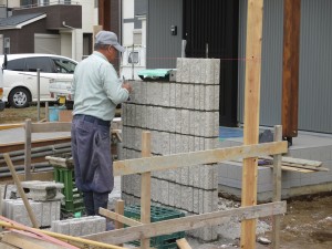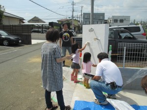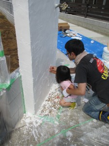 来週には、ご家族皆さんで門柱を漆喰塗りします!!