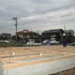 基礎のコンクリートも打ち終わり、大工さんが土台を敷きました。