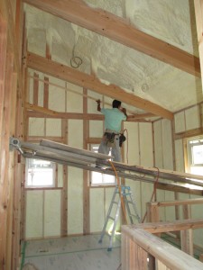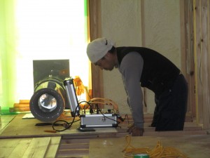 吹いた途端に膨らんで、みっちり隙間なく断熱されます。