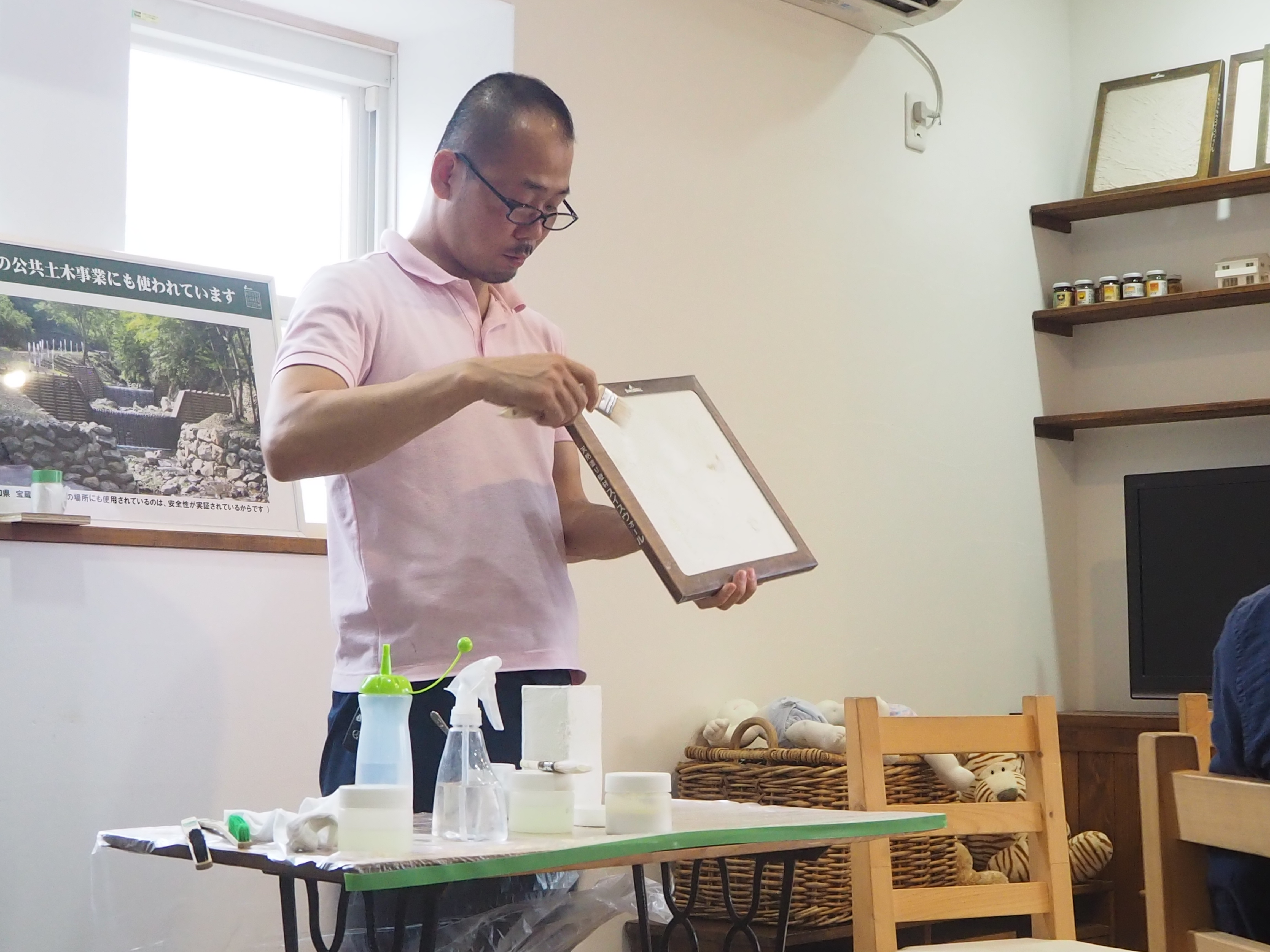 休憩後に行なわれた講習会では、第一部に引き続き、株式会社イケダコーポレーションの高橋さんに漆喰壁のお手入れ方法などをレクチャーしていただきました。