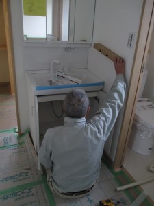 メーカーさんの洗面化粧台でも現場で組み立てるんですねー!