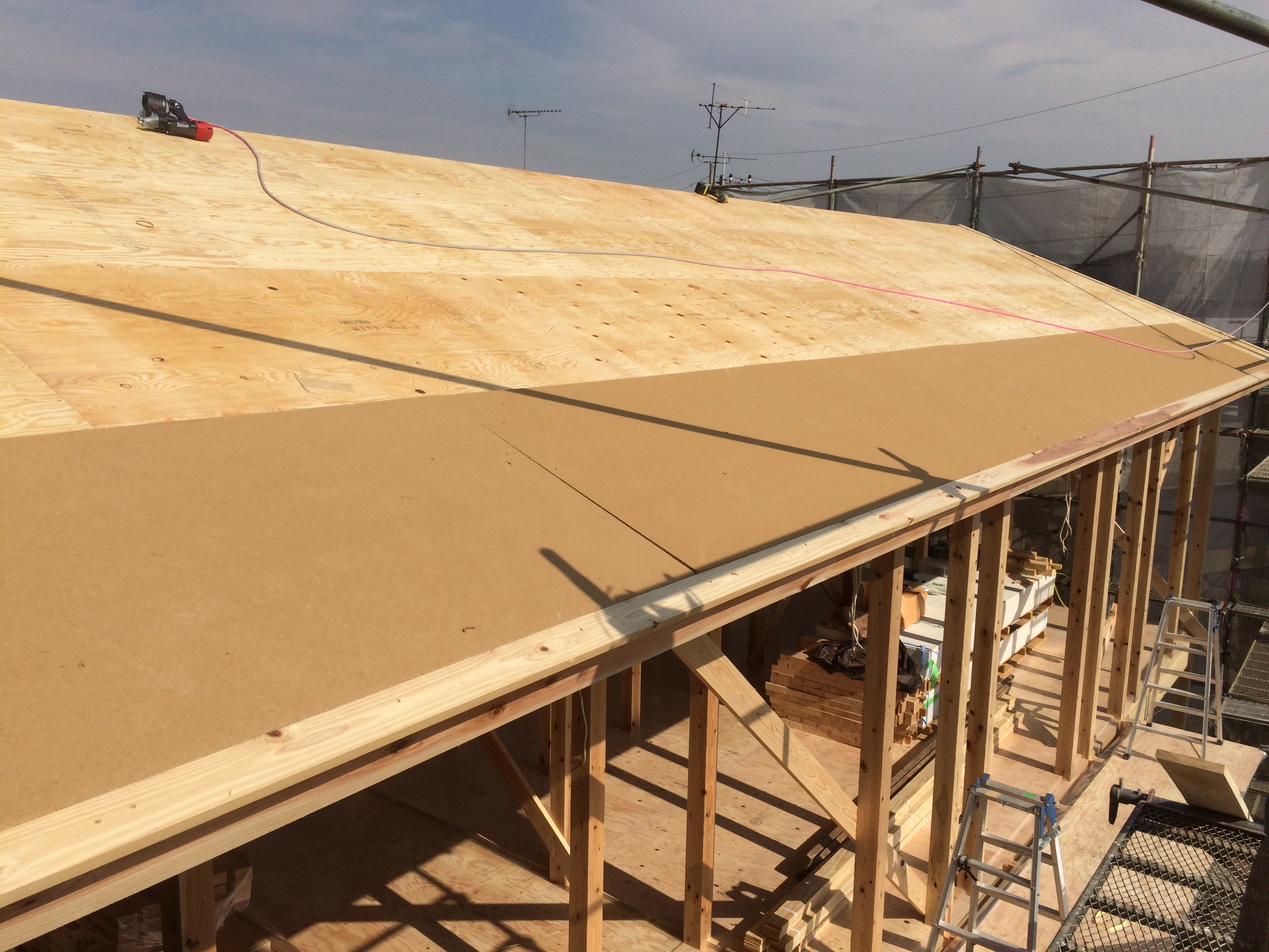 野地板の施工も完了し、只今、ビルボードを施工中。