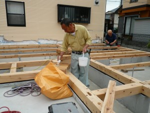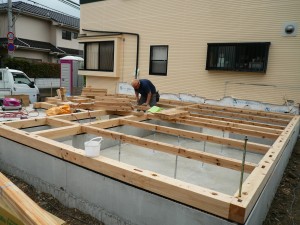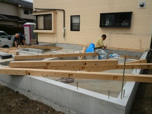 基礎の仮枠もとれ後は、土台敷きの準備にはいります。
