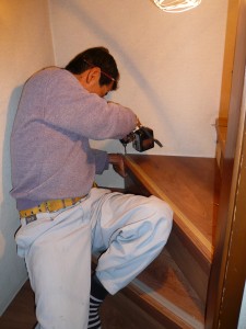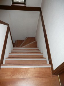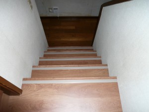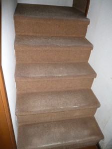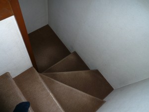 今回の工事は、カーペット張りの階段を