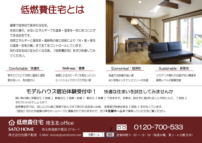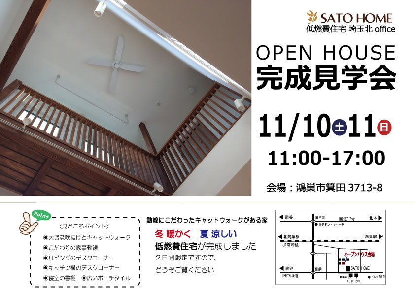 冬暖かく、夏涼しい『低燃費住宅』が完成しました。お施主さんのご厚意で2日間限定で開催します。