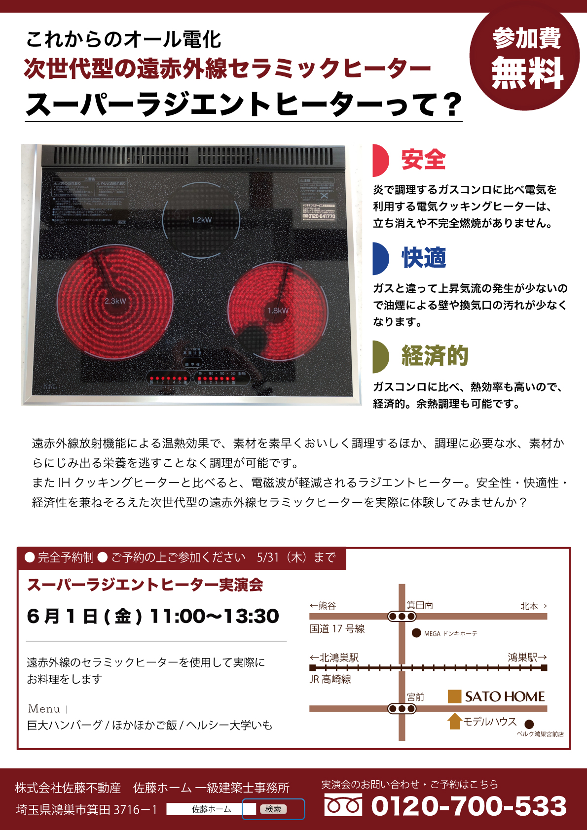 次世代型の遠赤外線セラミックヒーターを使用してお料理の実演をします。