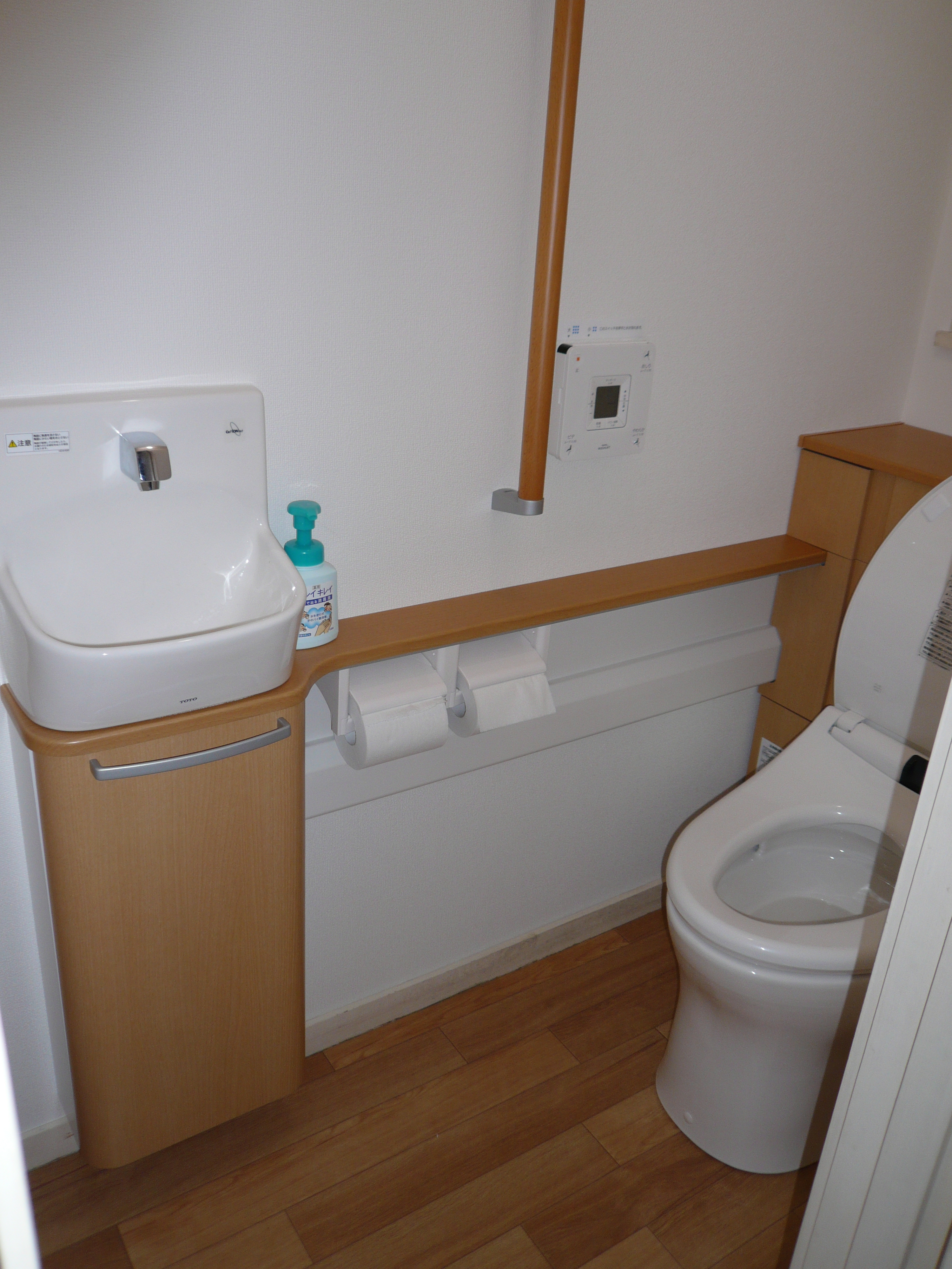 手洗器をつけその下には収納もあり、手すりやカウンターもついてデザインも一新されました。