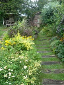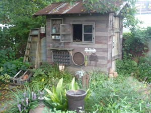 小屋の雰囲気と寄せ植えの色使いが素敵!!
