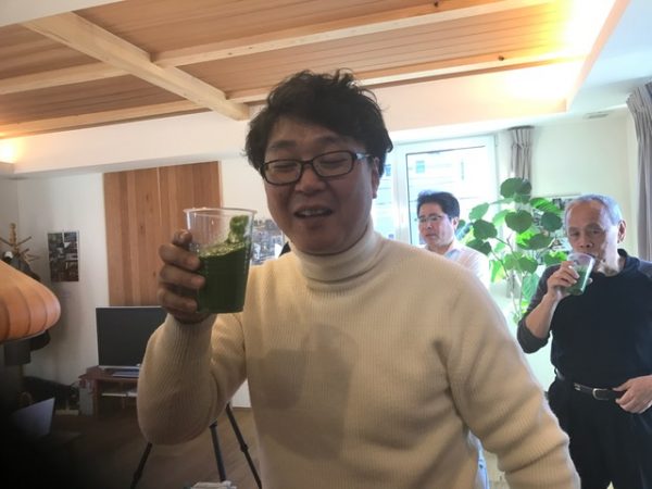 こちらはスムージー初体験のN氏の「美味しいねー」の顔です。