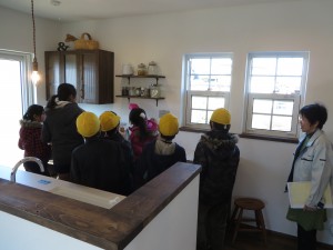 質問も沢山してくれました。家を作るのには木を何本使うの?家具も作るの?会社の名前の由来は何ですか?などなど、私たちが思っていた以上に家づくりや佐藤ホームのことに興味を持ってくれました。