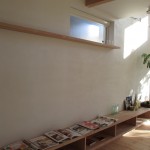 品庫や、両サイドの壁までフロートタイプの収納棚。