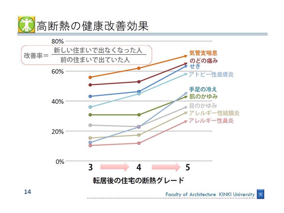 実際に断熱性能を向上させることで気管支喘息やアトピー性皮膚炎、アレルギー性鼻炎などの症状が、