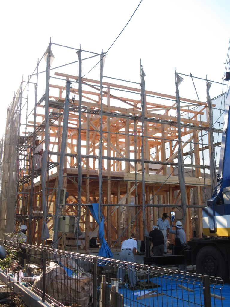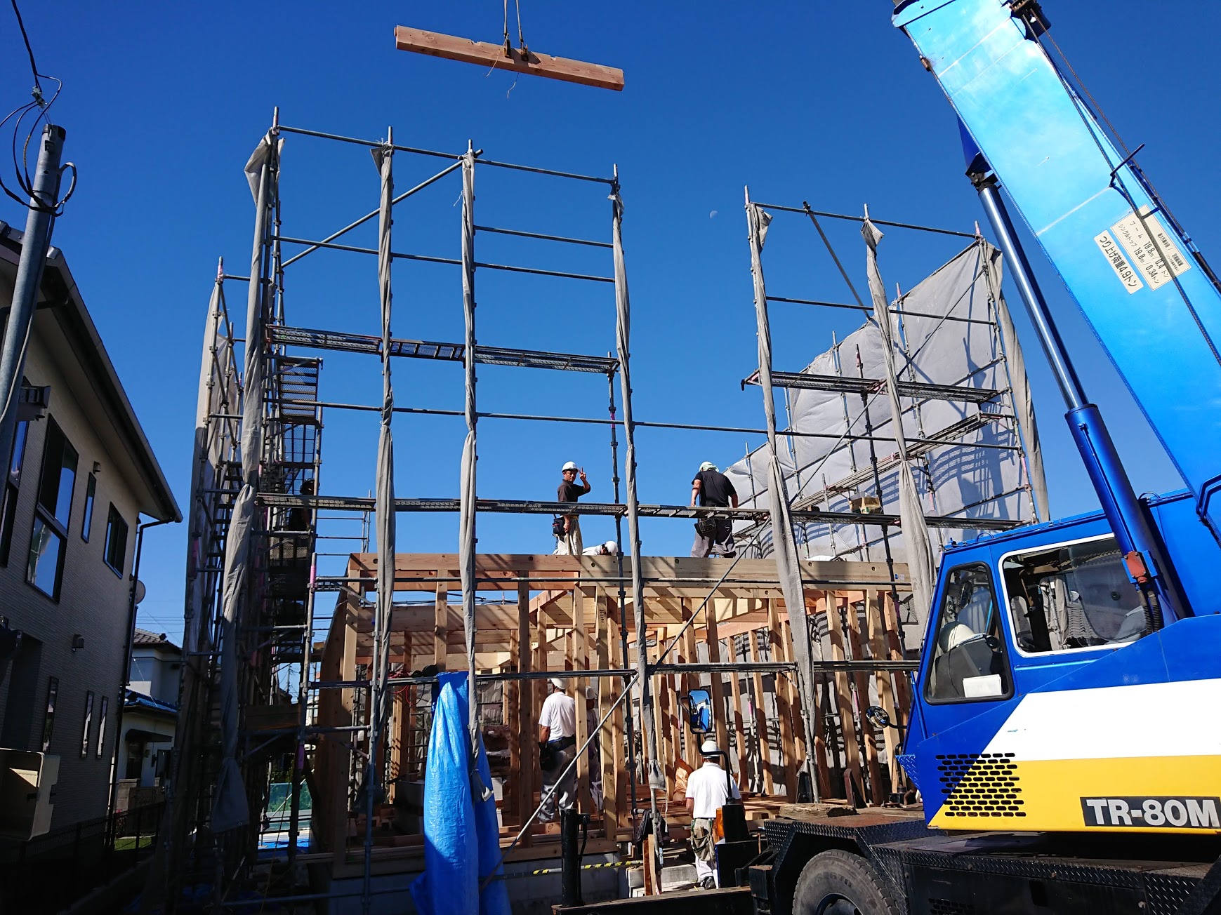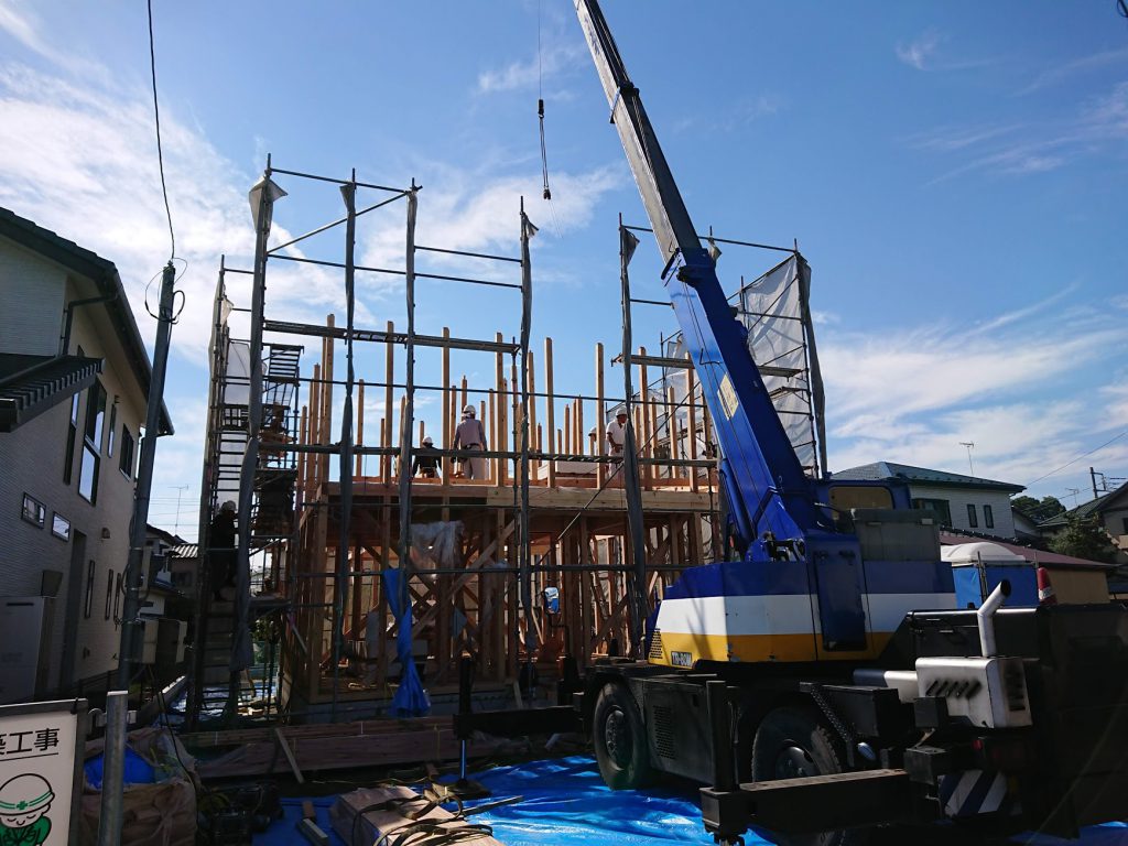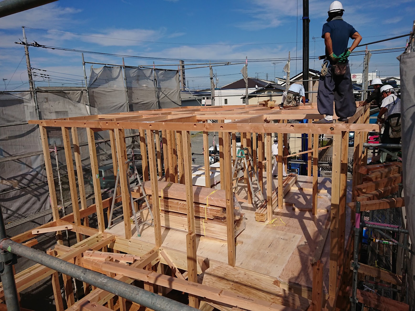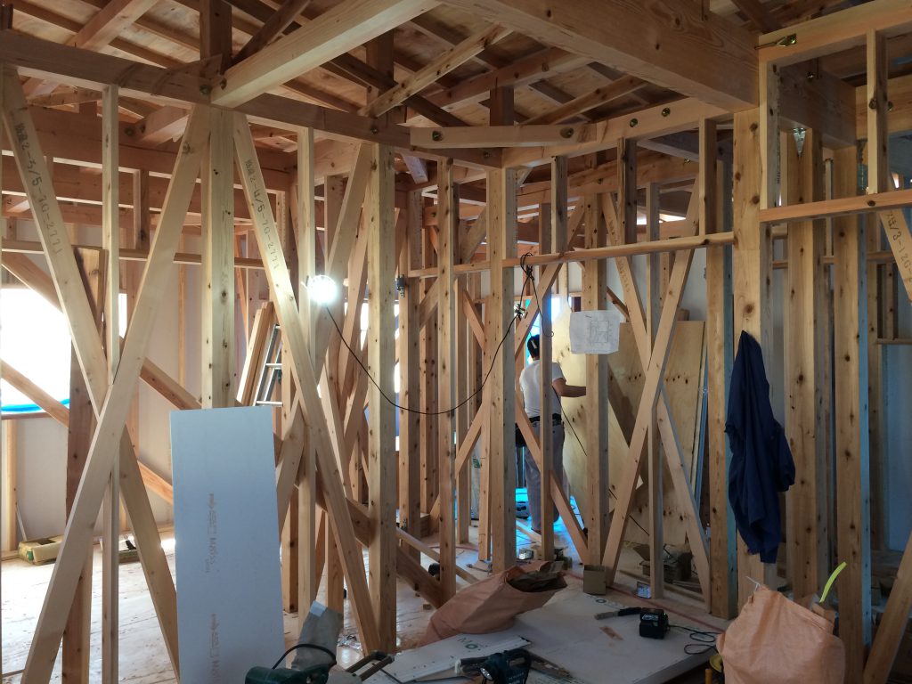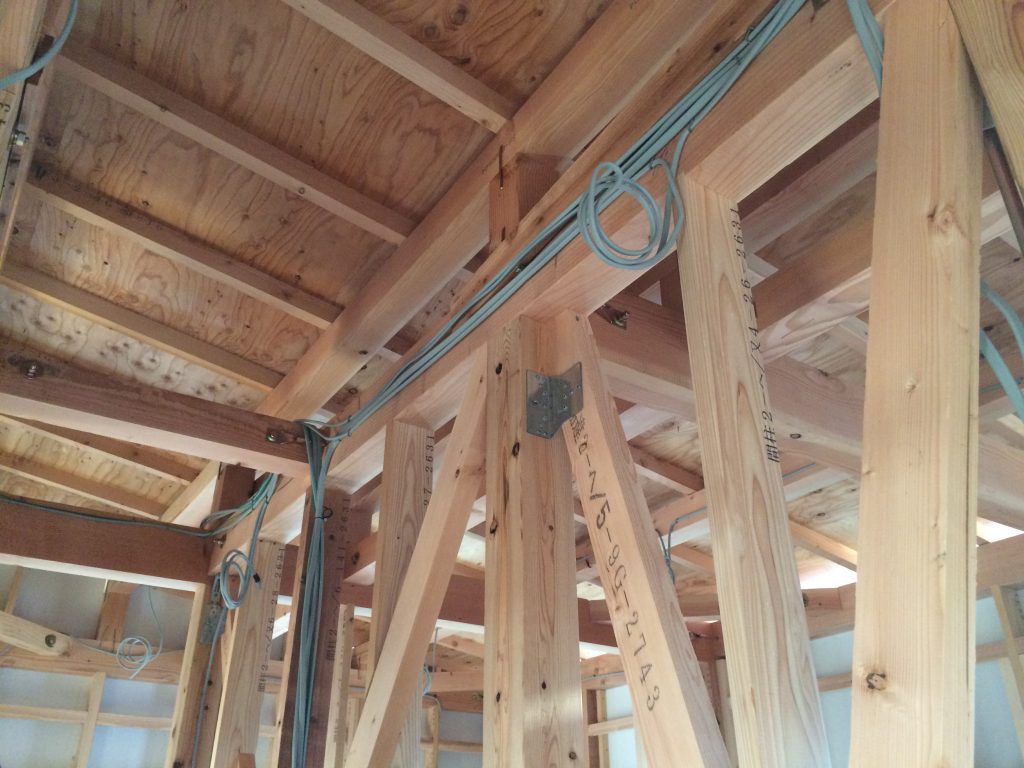2階の床合板も貼り終え、2階の柱を建て終わりました!