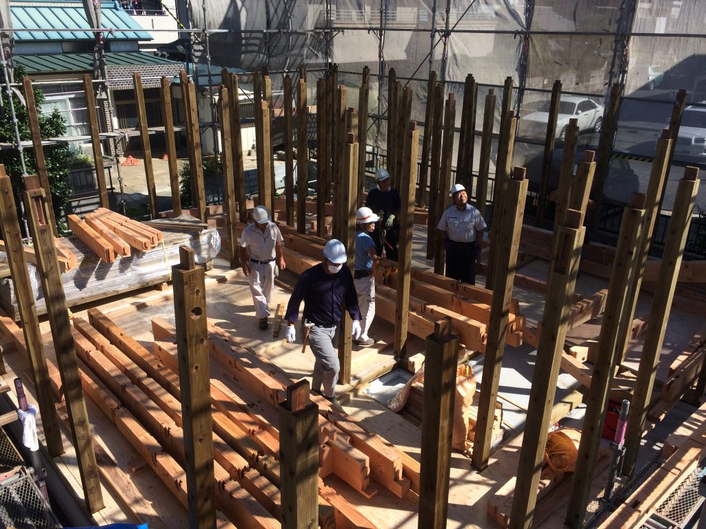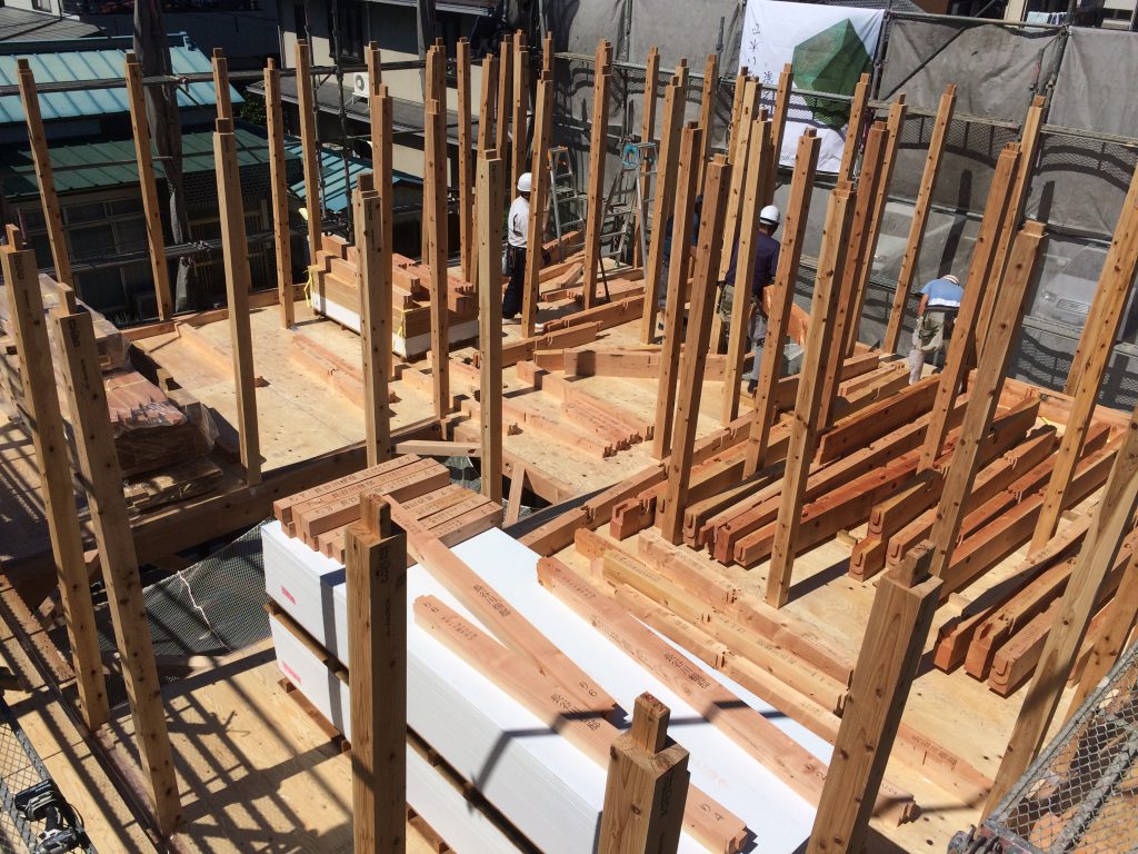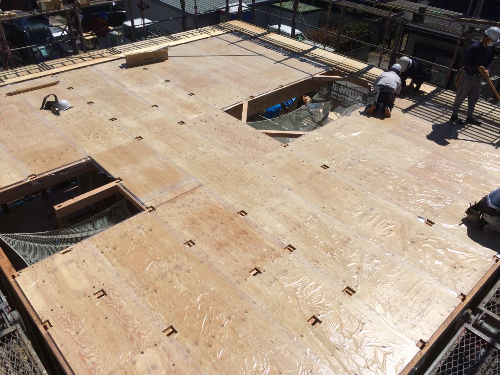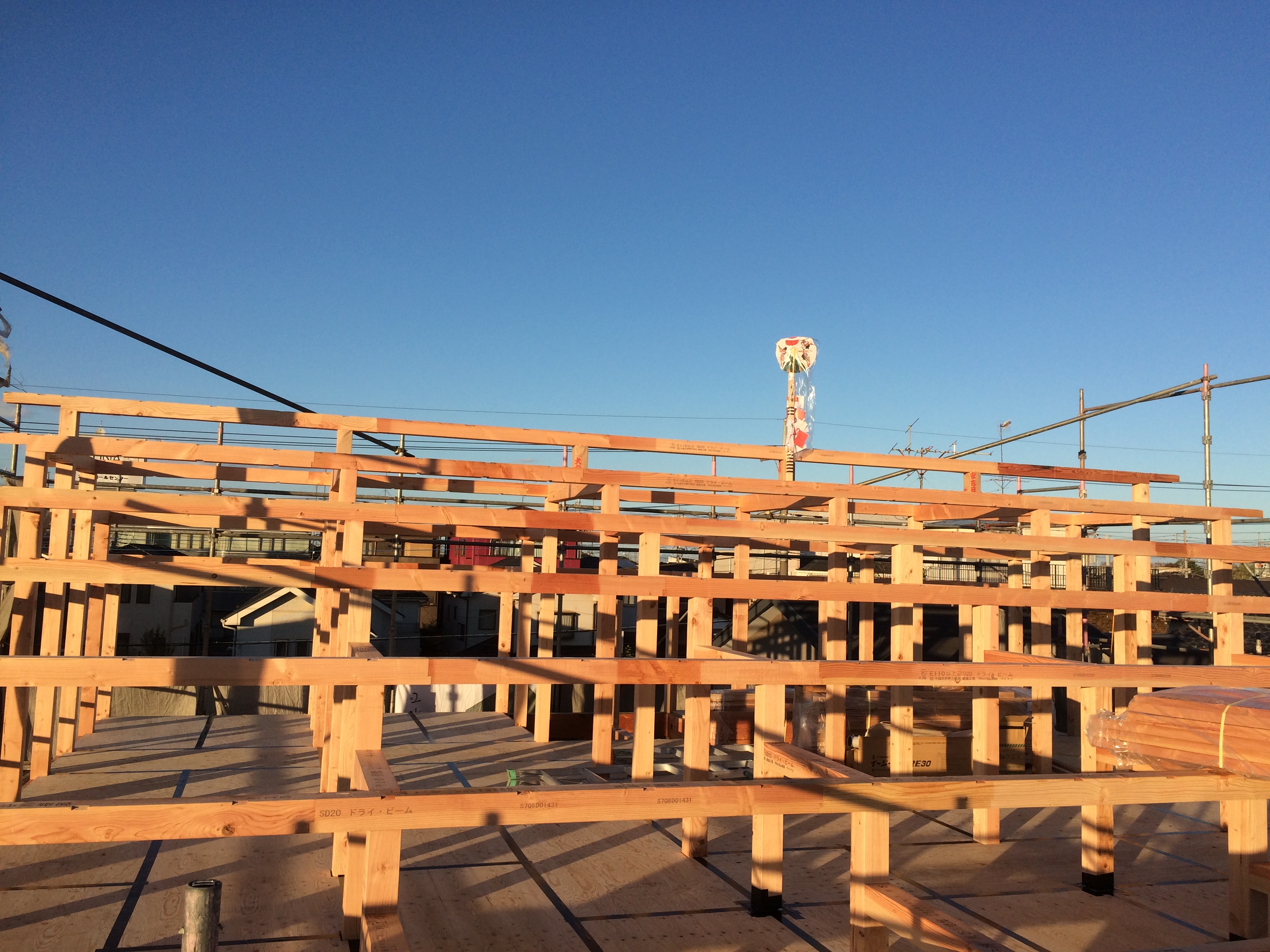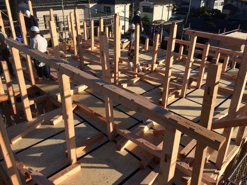 2階の梁も組み終わり、小屋の合板、小屋束と施工しました!