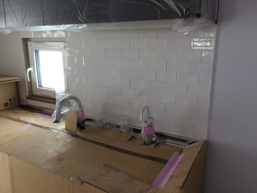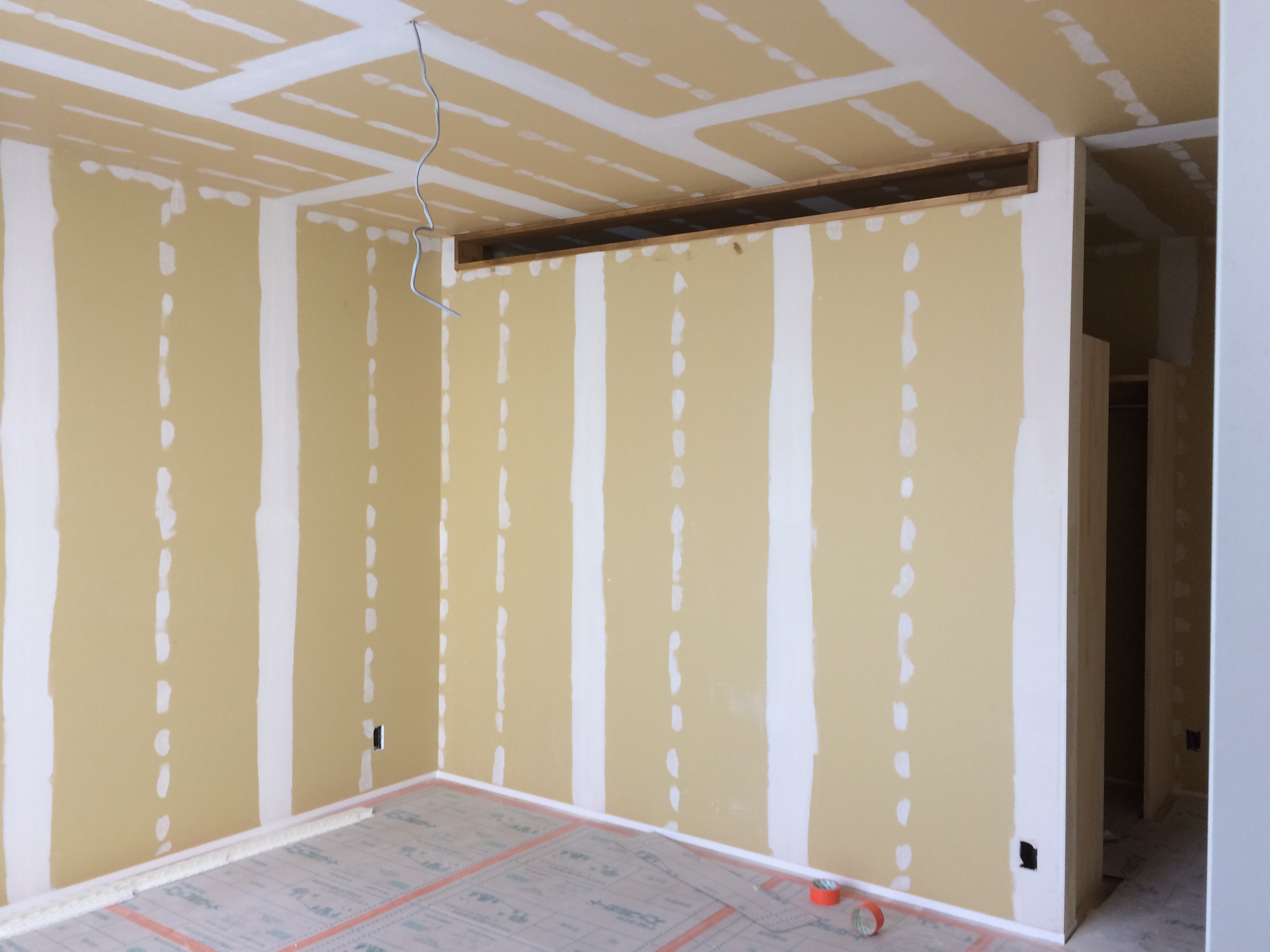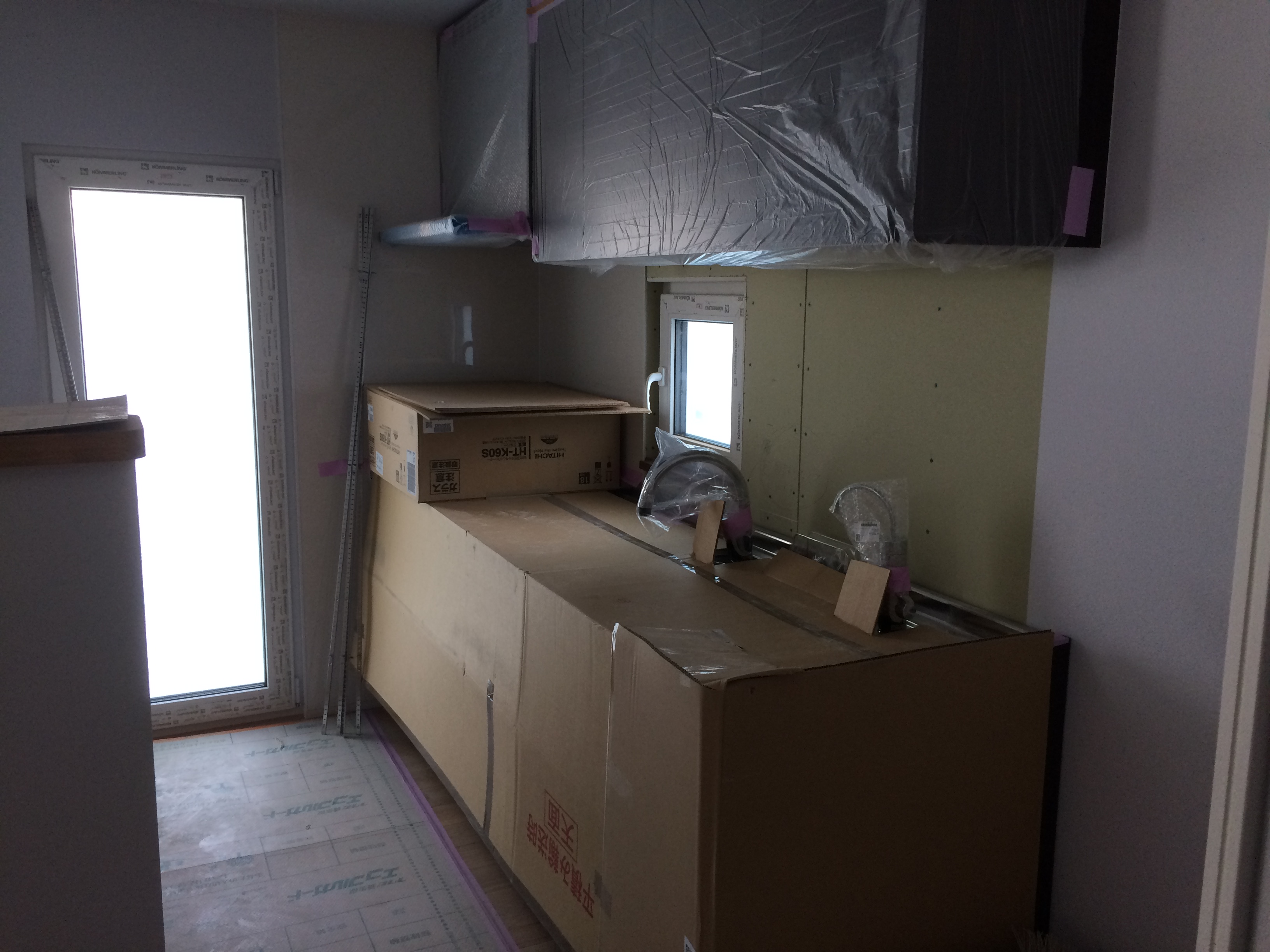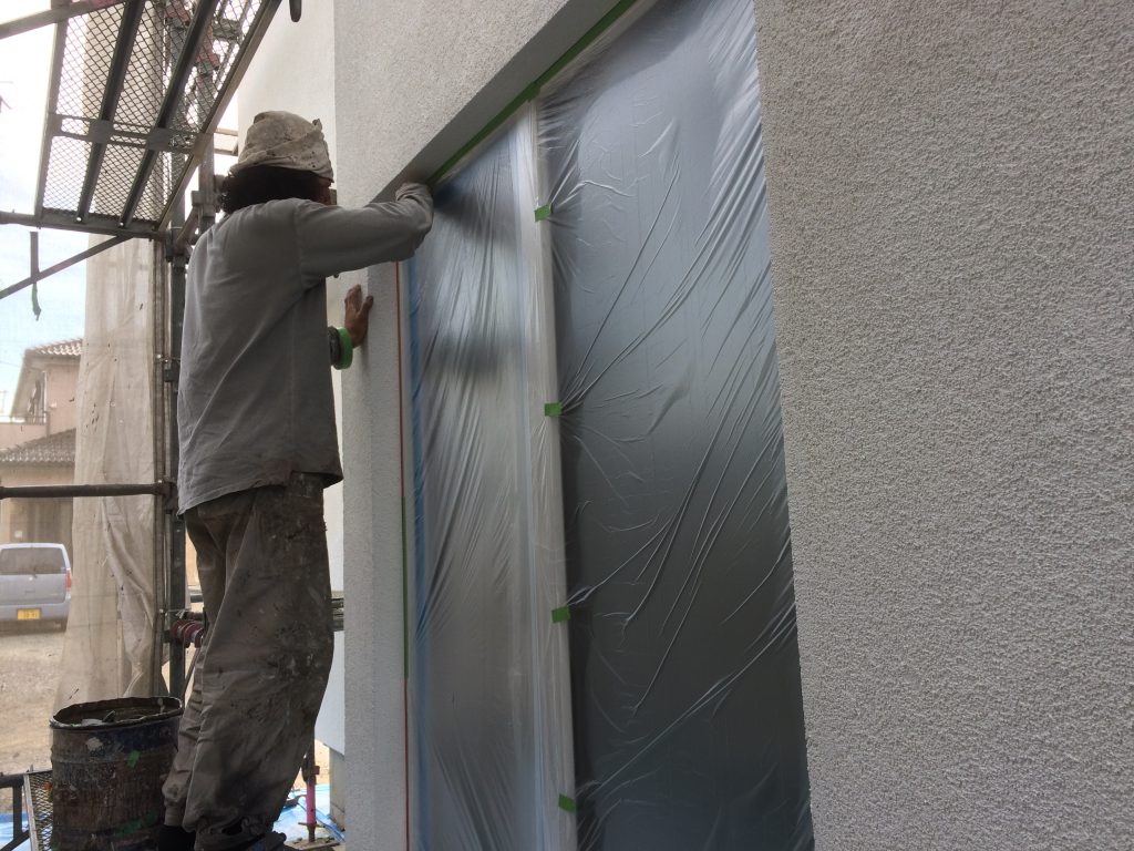 只今、ボード継ぎ目部分にテープ貼りを行っております。