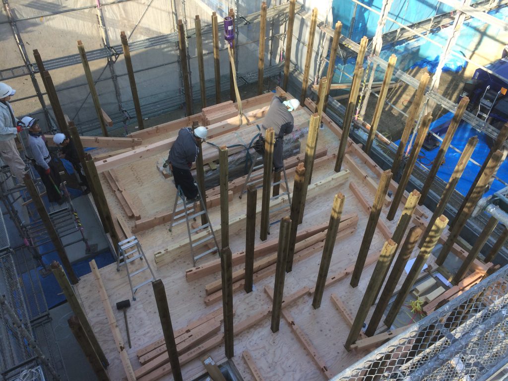 只今、梁組みを行っております。