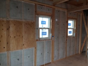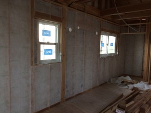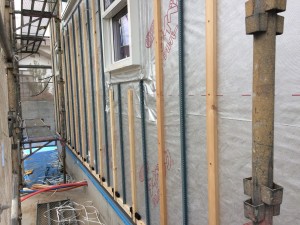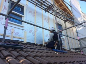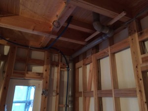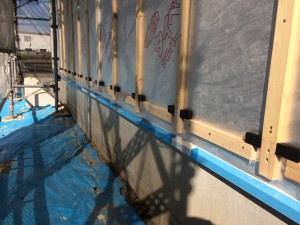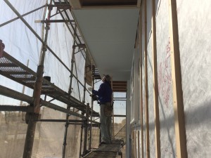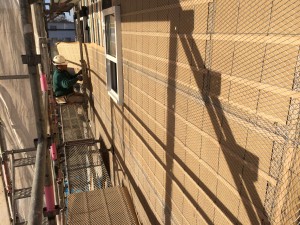 昨日貼ったシートに少し穴をあけ、そこから吹いていきます。