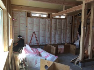 断熱材を施工しています。