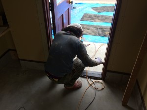 玄関ドアの塗装を行っています。