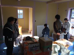 まずは造作家具類が汚れないようきっちり養生を行い、