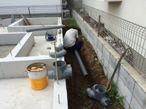 防湿シートを敷き、捨てコンクリートを打設しました。