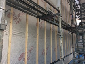 只今、胴縁を施工中です。