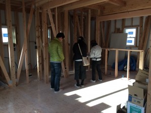 現場にてスイッチとコンセントの位置を確認をしていきます。