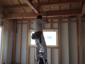 配線作業完了後、断熱材を施工していきます。