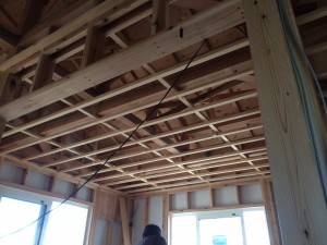 只今、野縁組みを行っております。