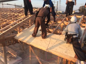 屋根材も本日納品されたので、明日は屋根屋さんも