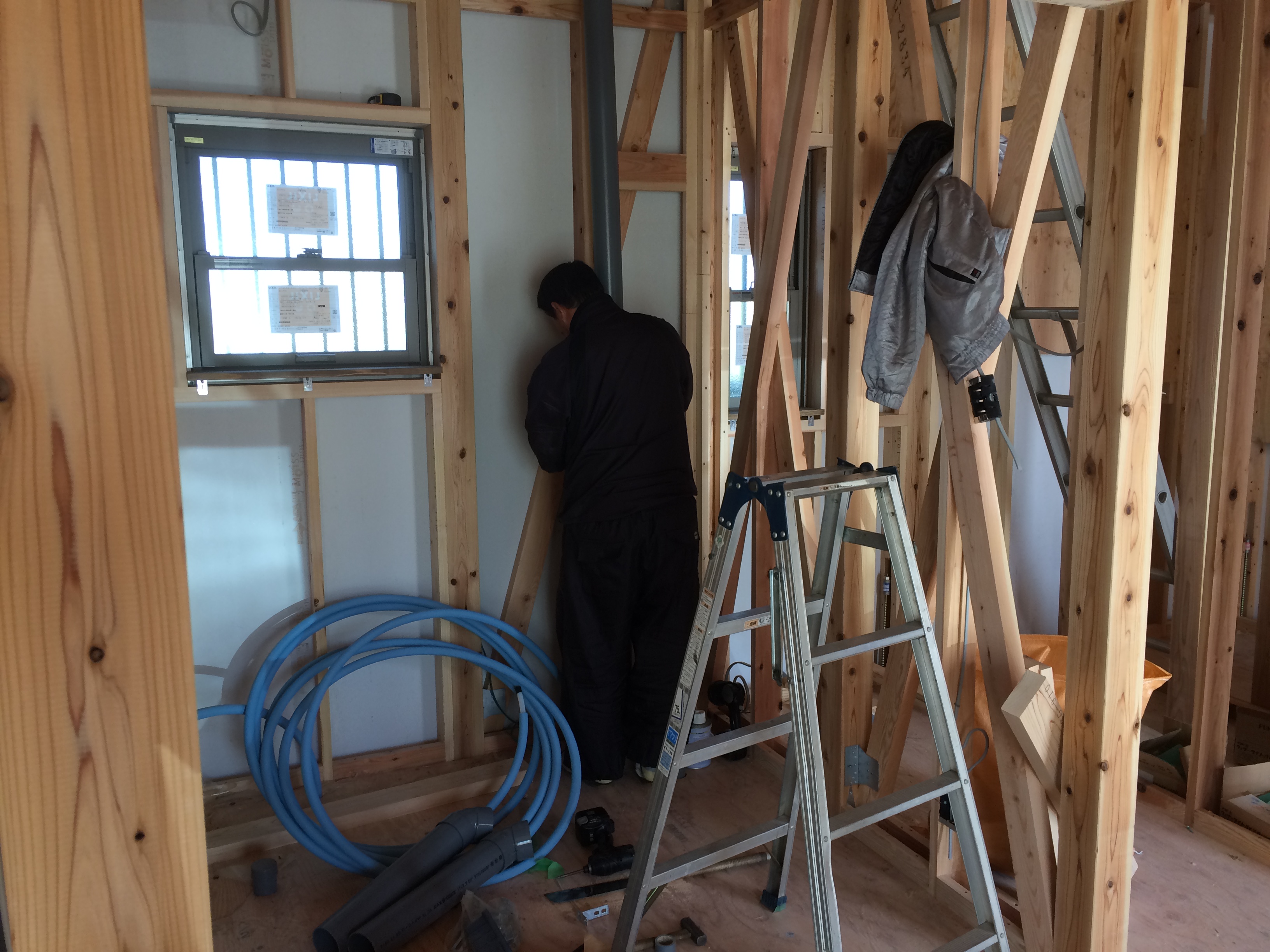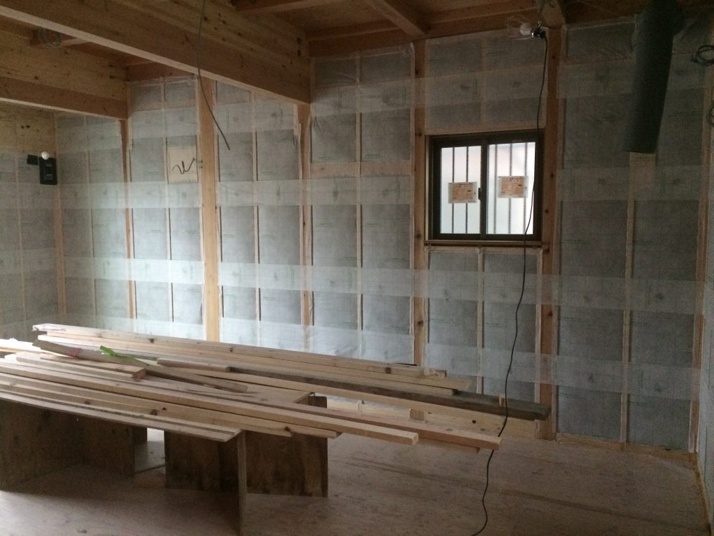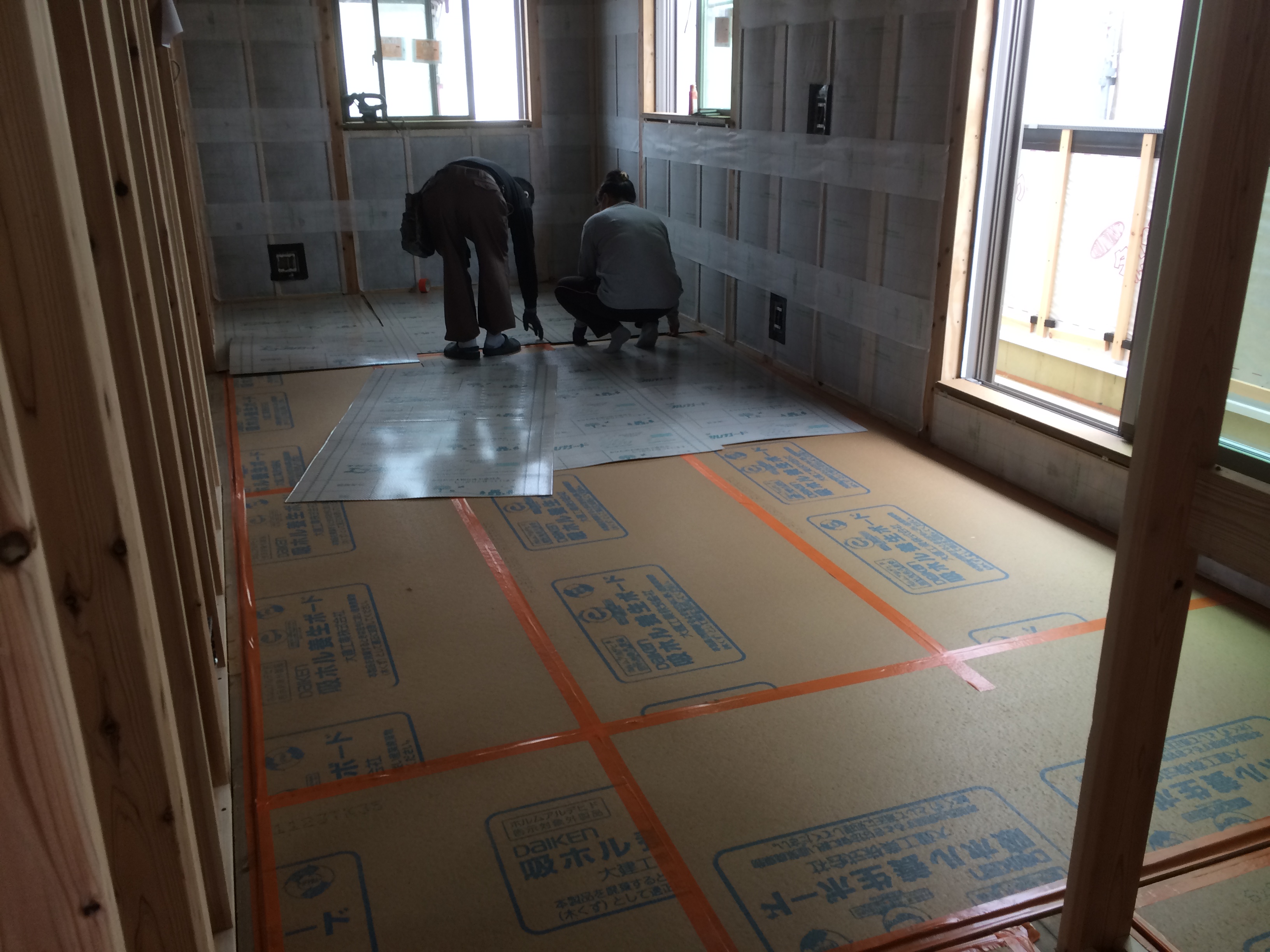 貼ったシートに穴をあけそこから吹き込み、穴はシートで塞ぐという工程です。