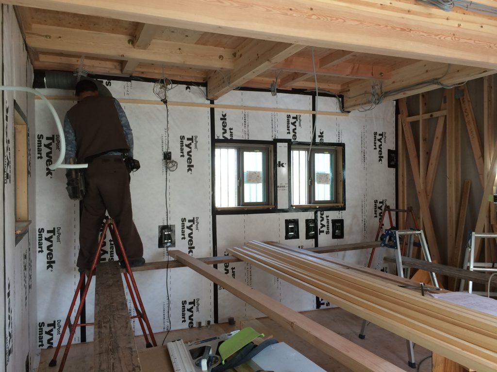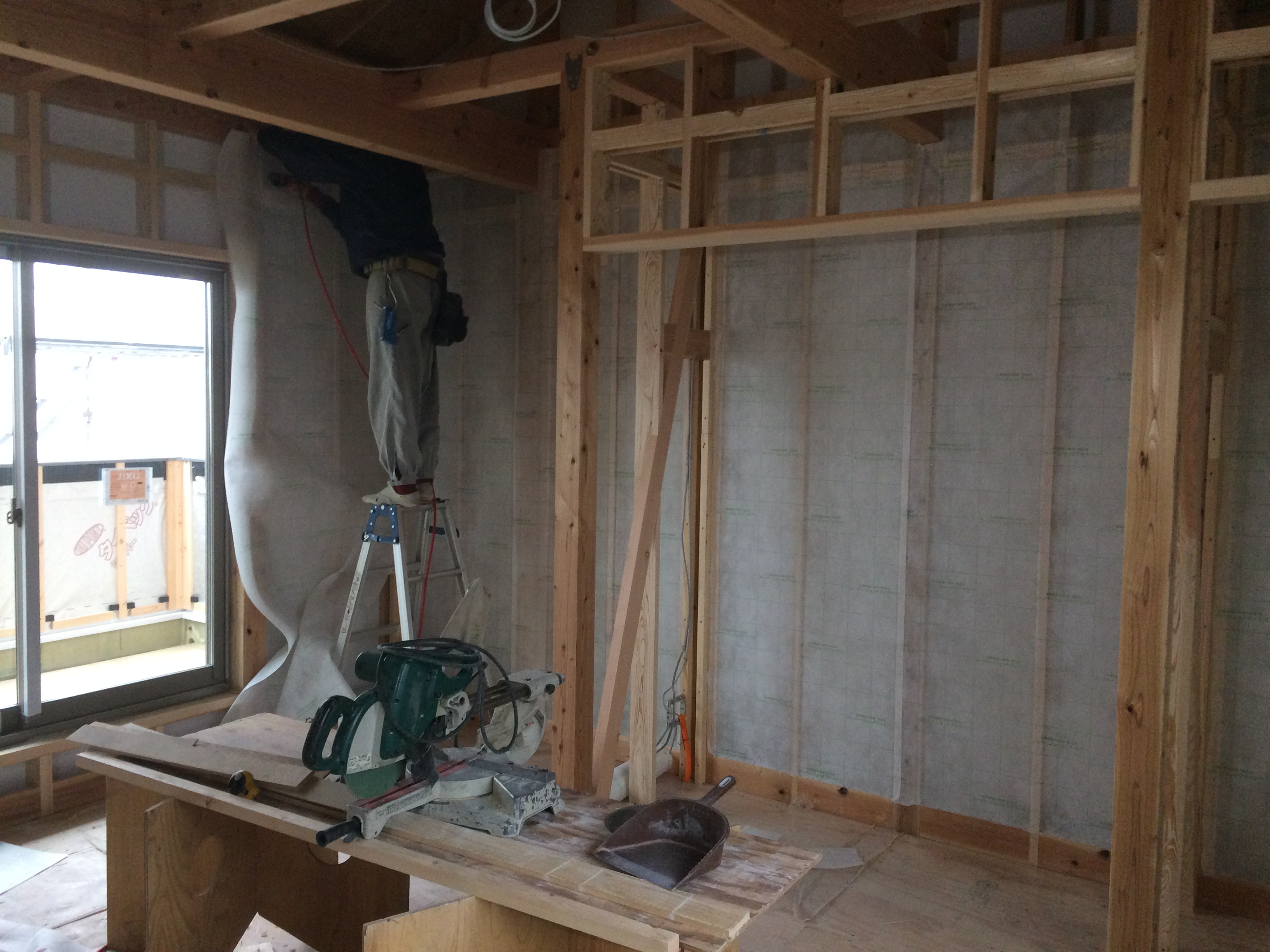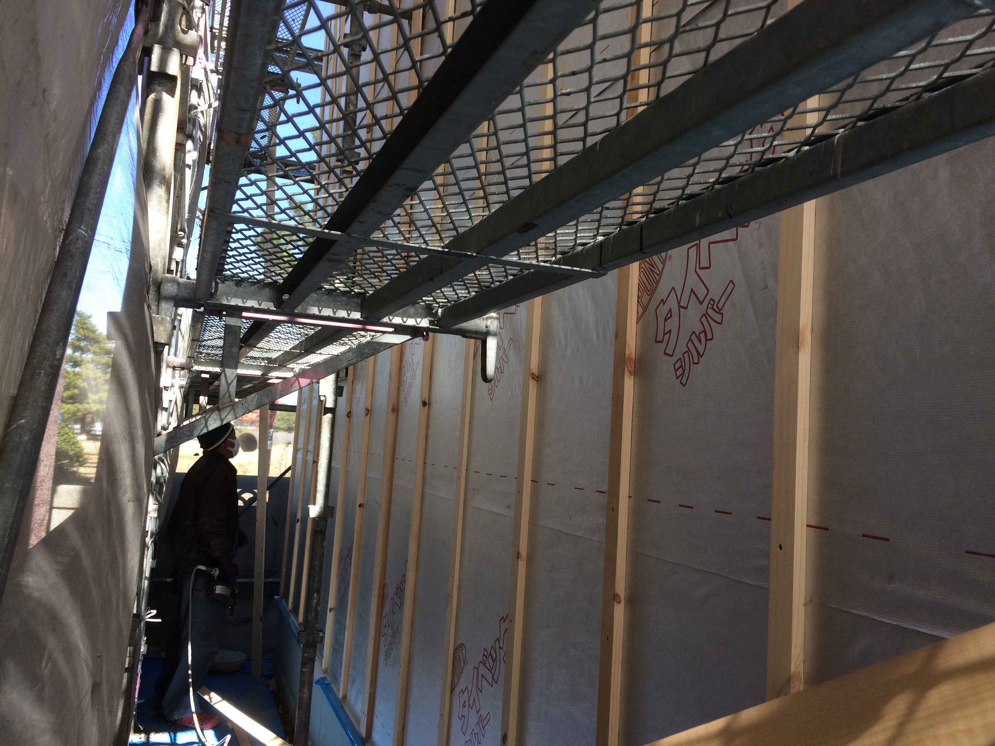 貼ったシートに穴をあけそこから吹き込み、穴はシートで塞ぐという工程です。