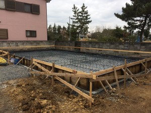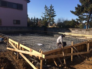 明日、配筋検査を行いスラブ打設へと進めていきます。