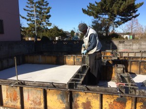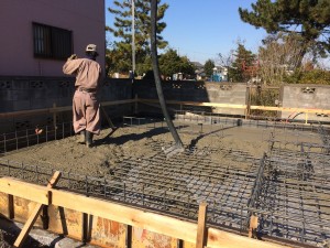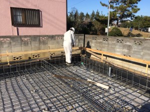 先日、組んだ型枠の中に鉄筋を配置していきます。