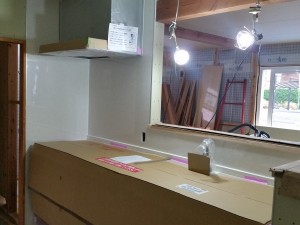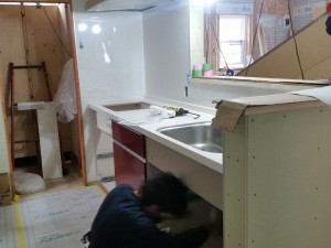 本日は、キッチンの施工をしています。