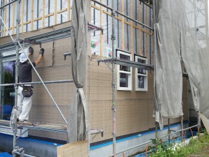 外壁は下塗り・中塗り・仕上塗りの計3回塗りで仕上げます。