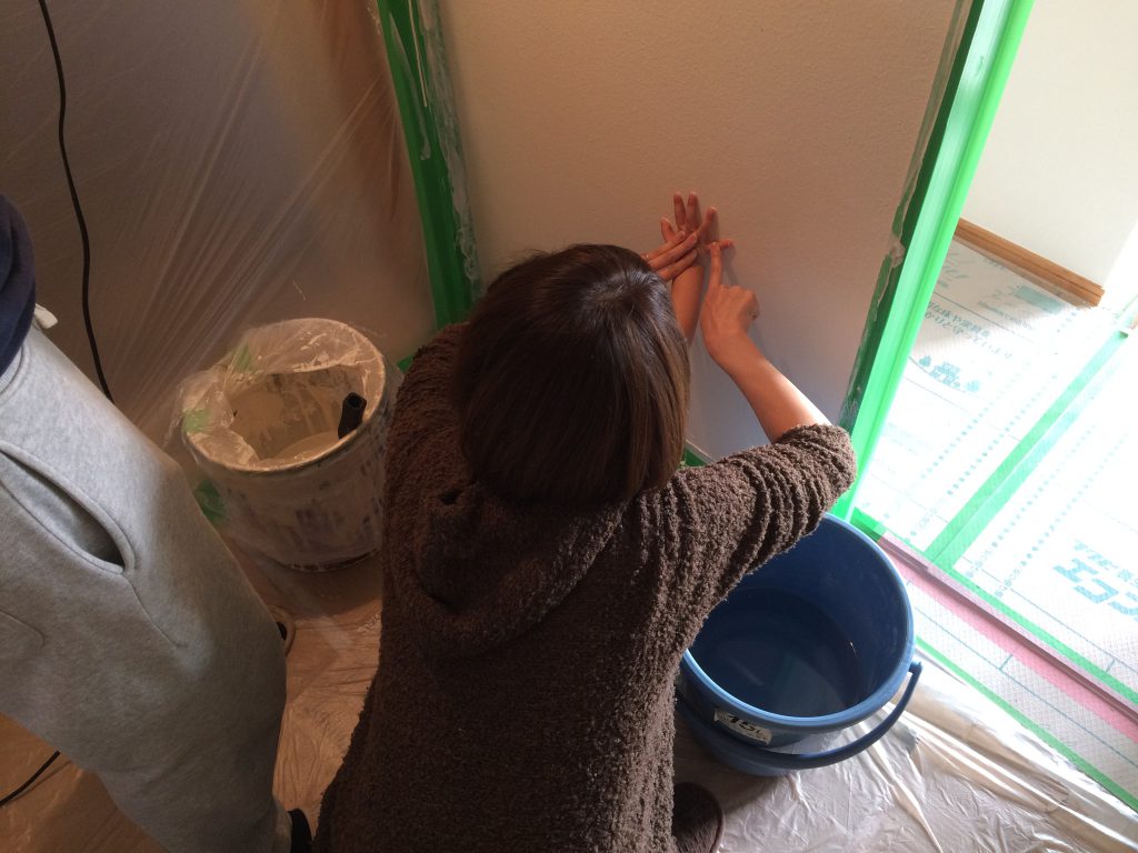本日は左官体験です!…ローラーでコロコロ塗る漆喰なので、塗装体験になるのでしょうか?