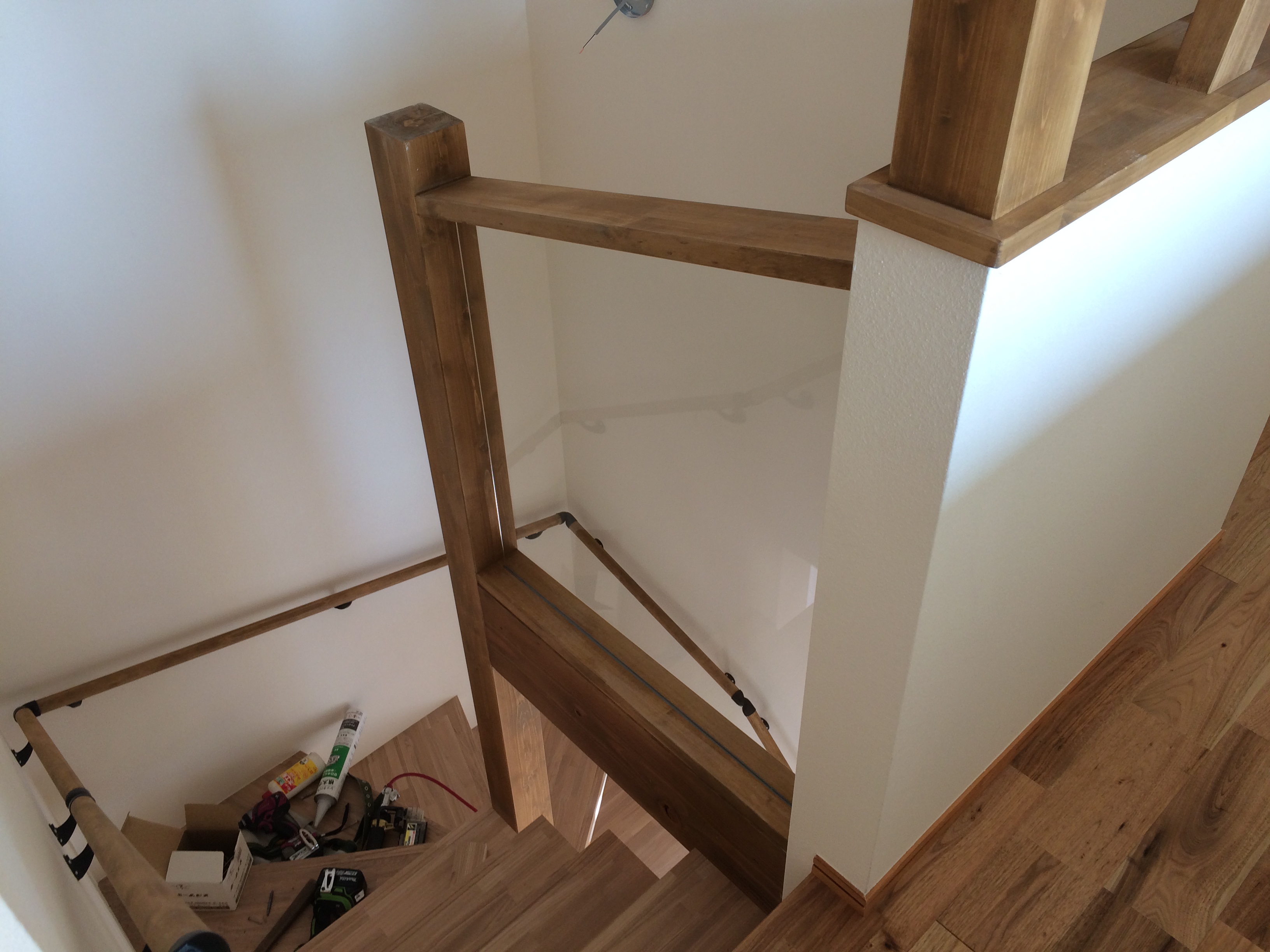 クリーニングも完了し、階段腰壁部分に強化ガラスを施工しました。