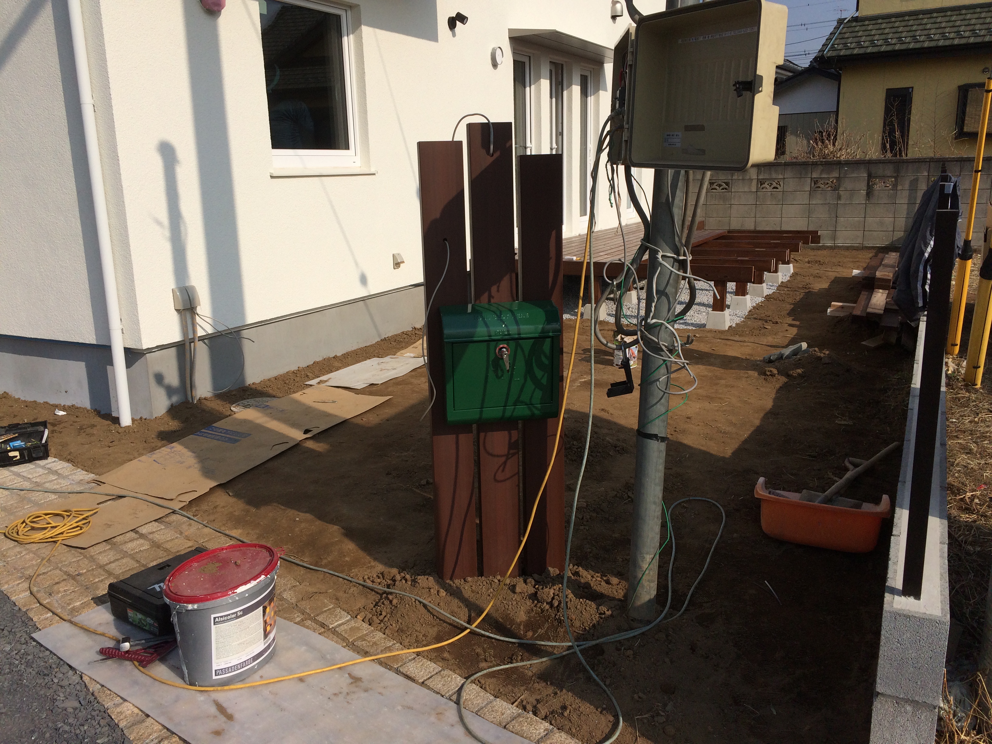 後程、インターホン・門灯と取り付けていきます。