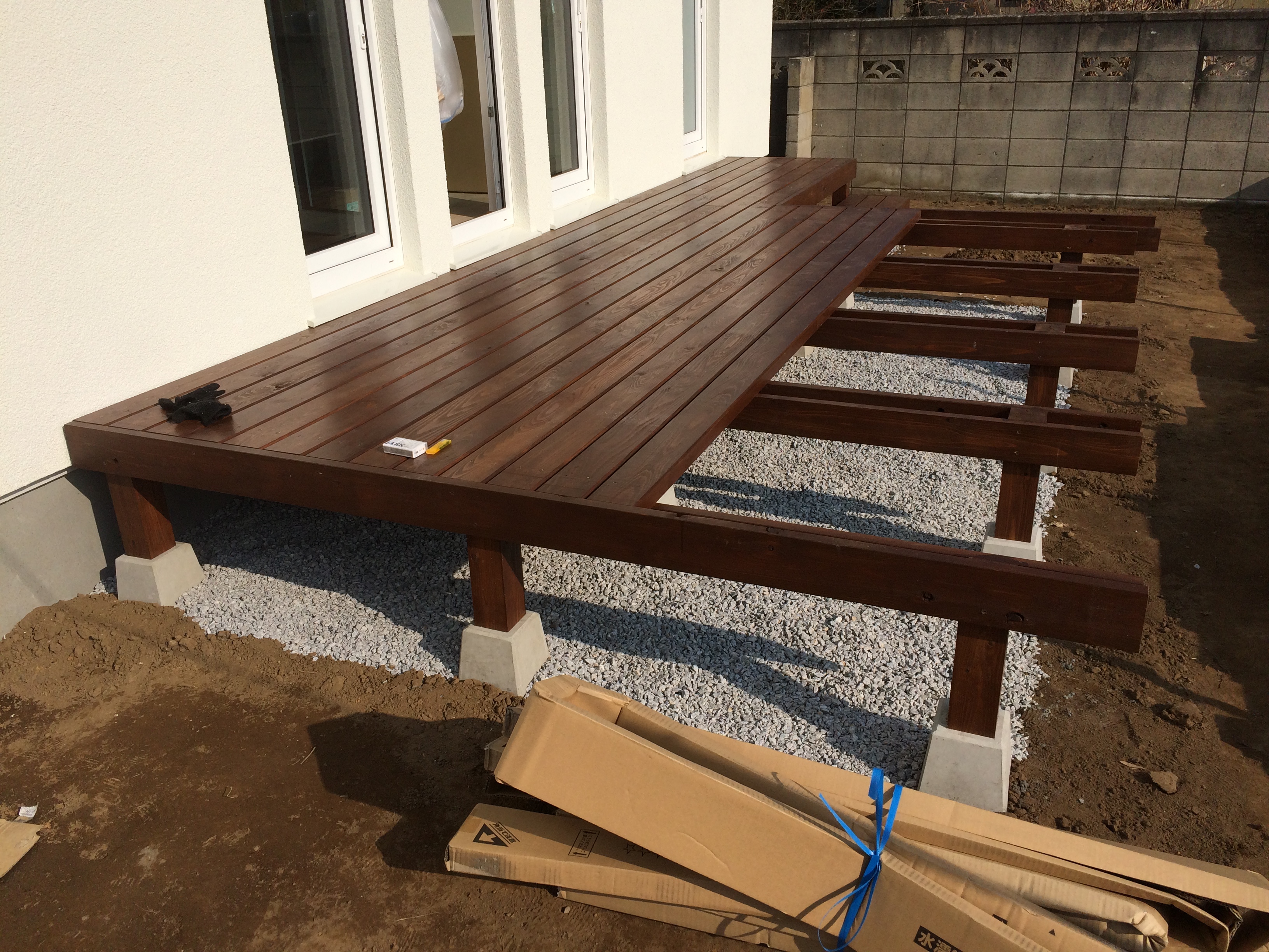 只今、ウッドデッキを施工中。