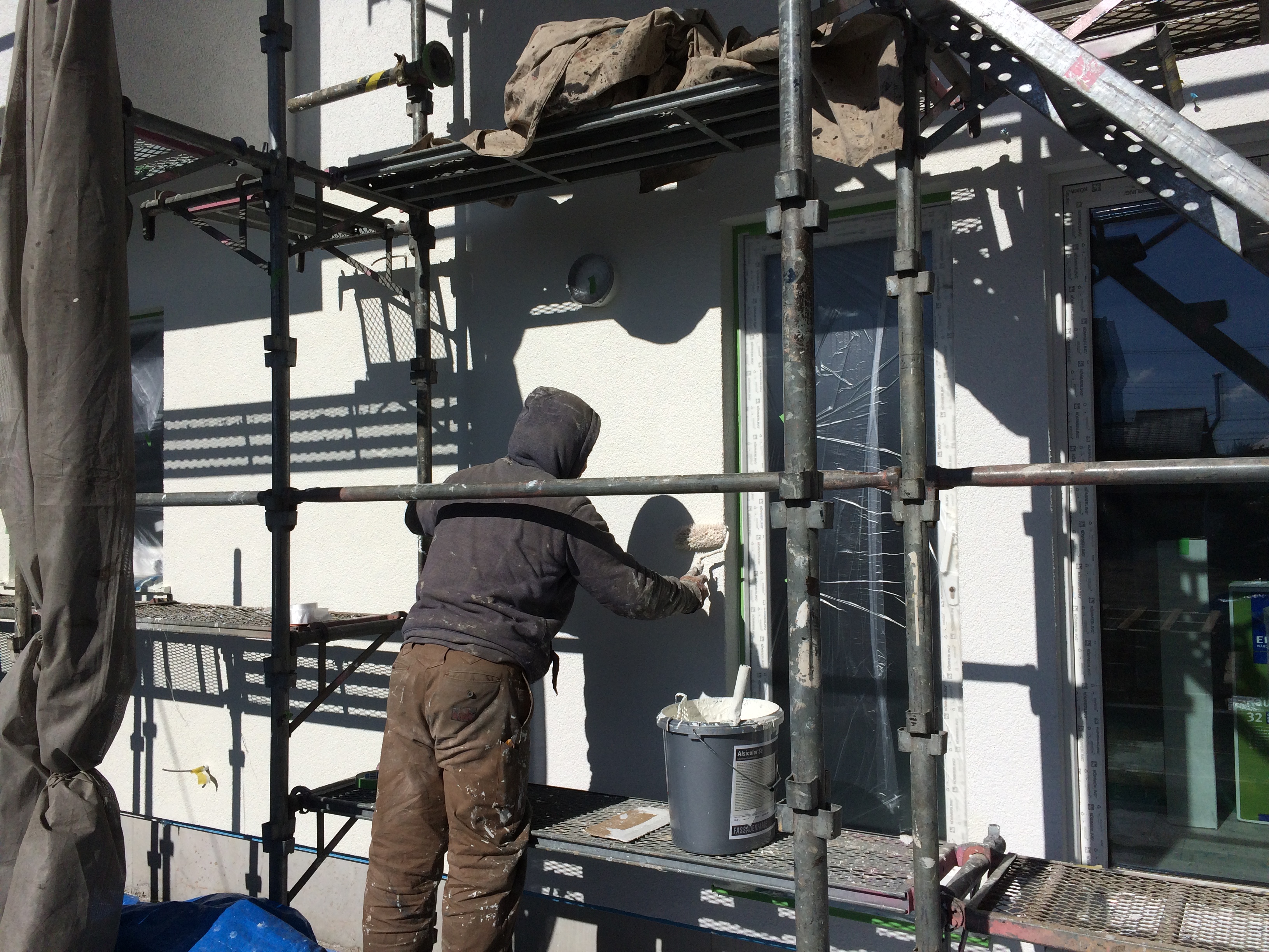 ルナファーザーも貼り終え、本日からルナ漆喰を施工していきます。