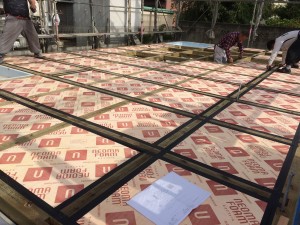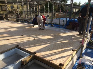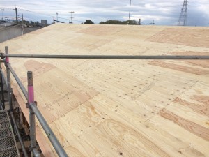 2階の床合板も敷き終わり、只今養生中!