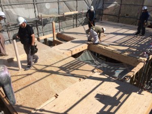 只今、コンクリートを均し中です。
