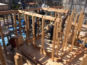 柱も立て終わり、梁を組み始めました!