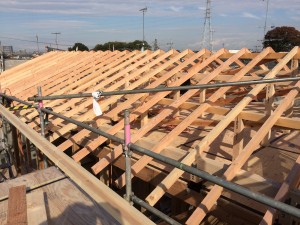 梁も組み終わり、小屋組みを行っています!